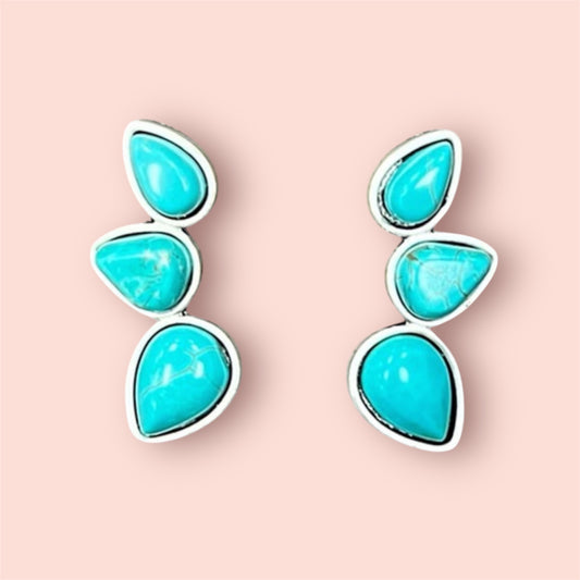 1.4" Long, Navajo Turquoise Stud Earrings – Antique Silver Plated, Western Style, Hypoallergenic 724212