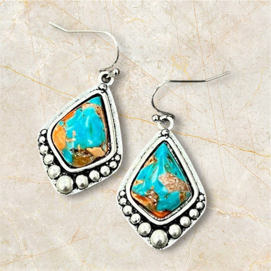 1" Long, Gemstone Earrings – Fish Hook, Antique Silver Plated, Western Jewelry, Hypoallergenic 724488