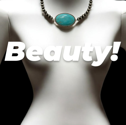 15" to 20" Long, Handmade 8mm Navajo Bead Necklace with Oval Turquoise Pendant 734337