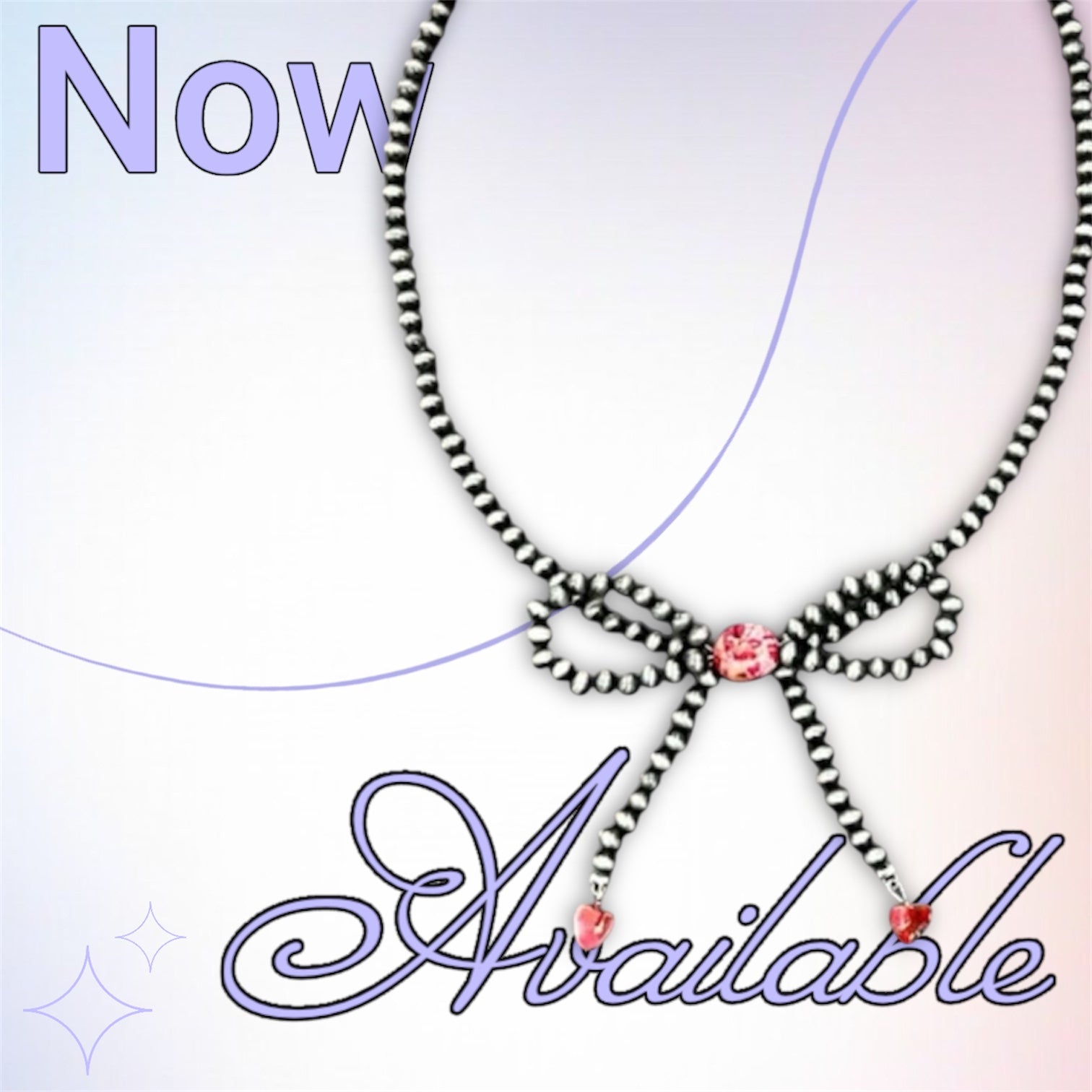 15" to 20" Long, Handmade Bow Navajo Bead & Gemstone Necklace – Tiny 4mm Beads, Heart & Rondelle Stones, Lightweight, Western Jewelry 939091