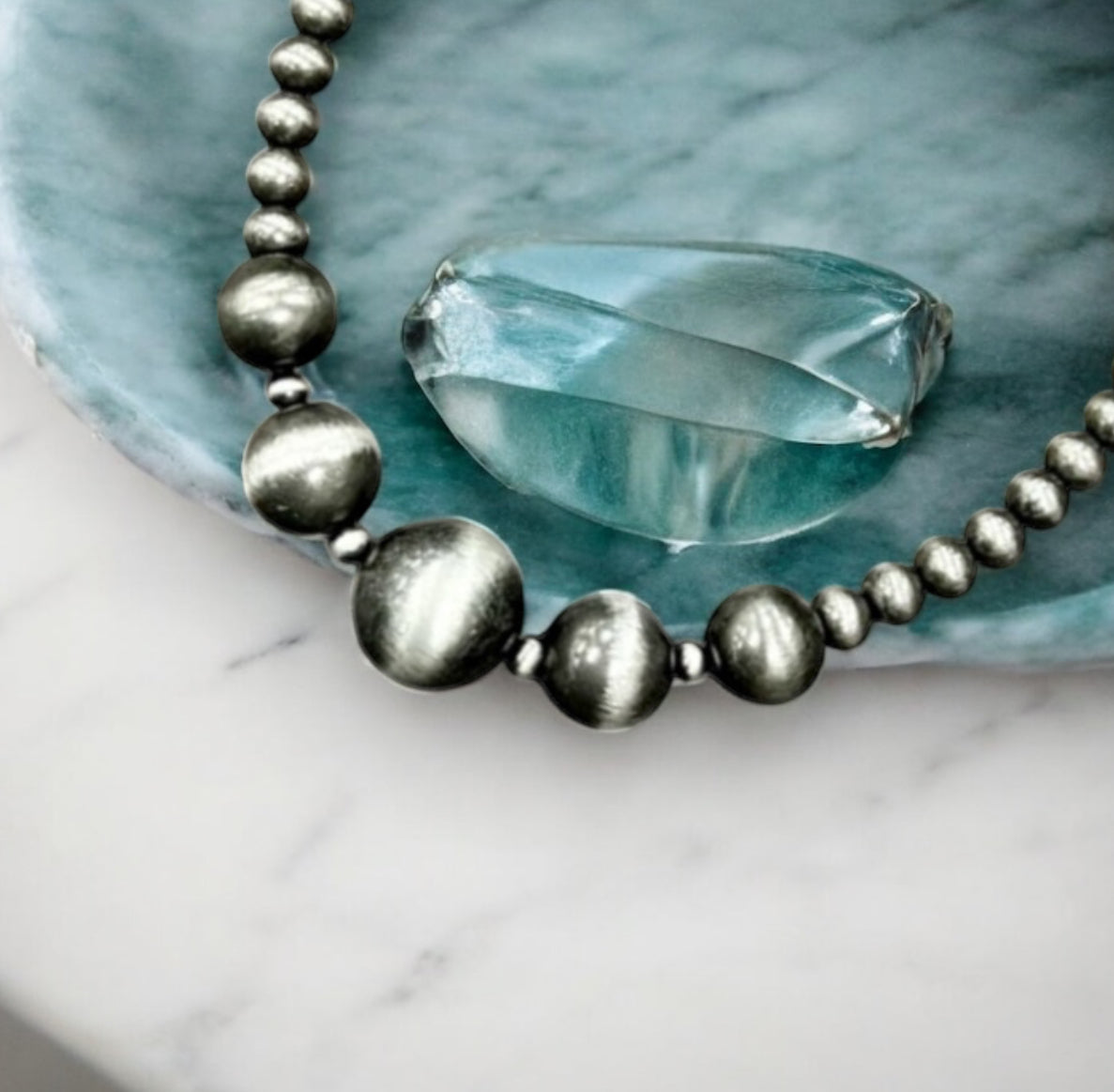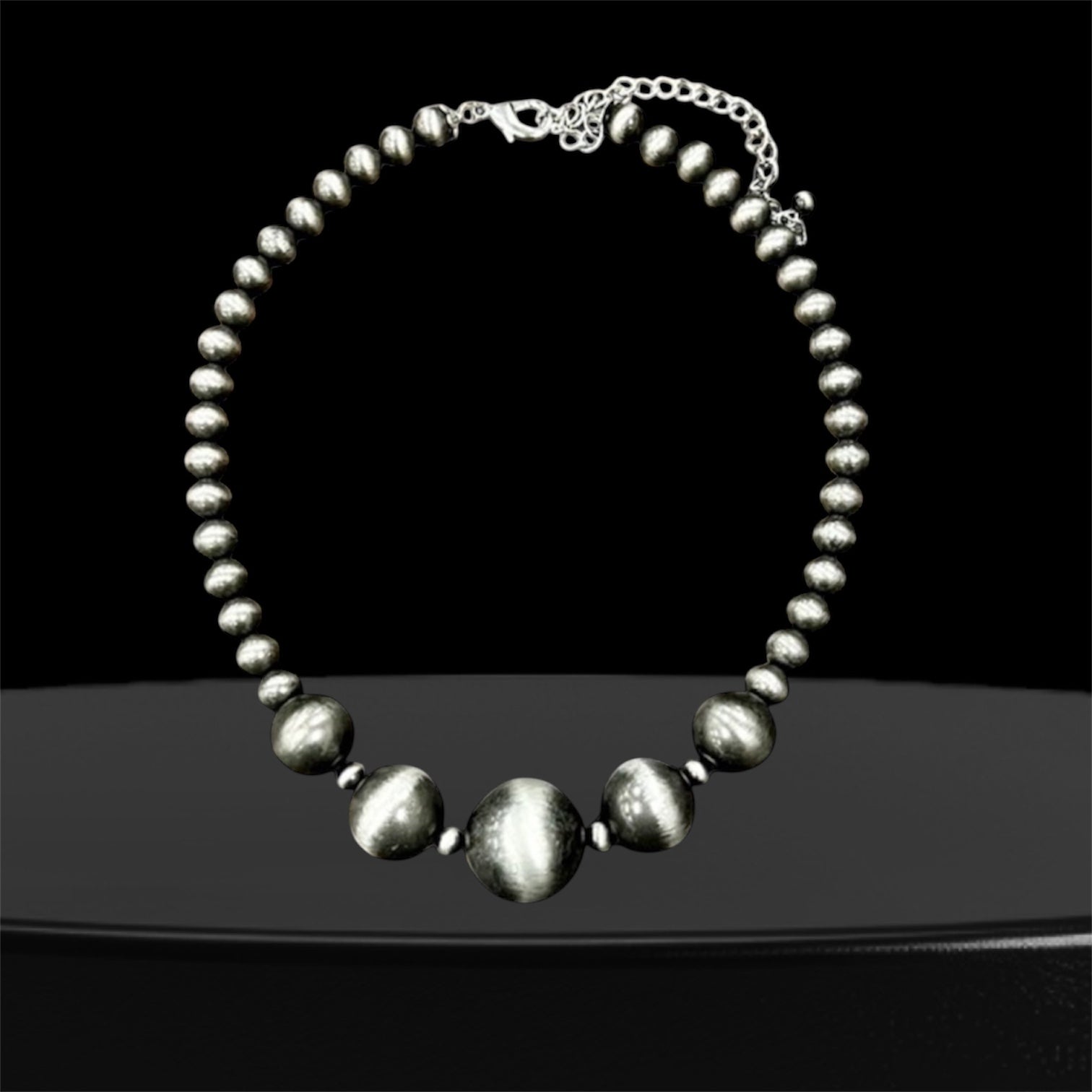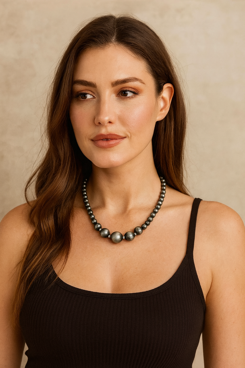 Turn heads with this handmade Very-Big! Navajo bead necklace, designed with graduated bead sizes up to 25mm for maximum impact. The necklace includes 10mm, 18mm, 20mm, and 25mm Navajo beads, creating a bold, eye-catching look that embodies true Southwestern style.
