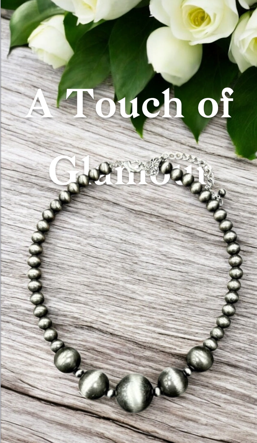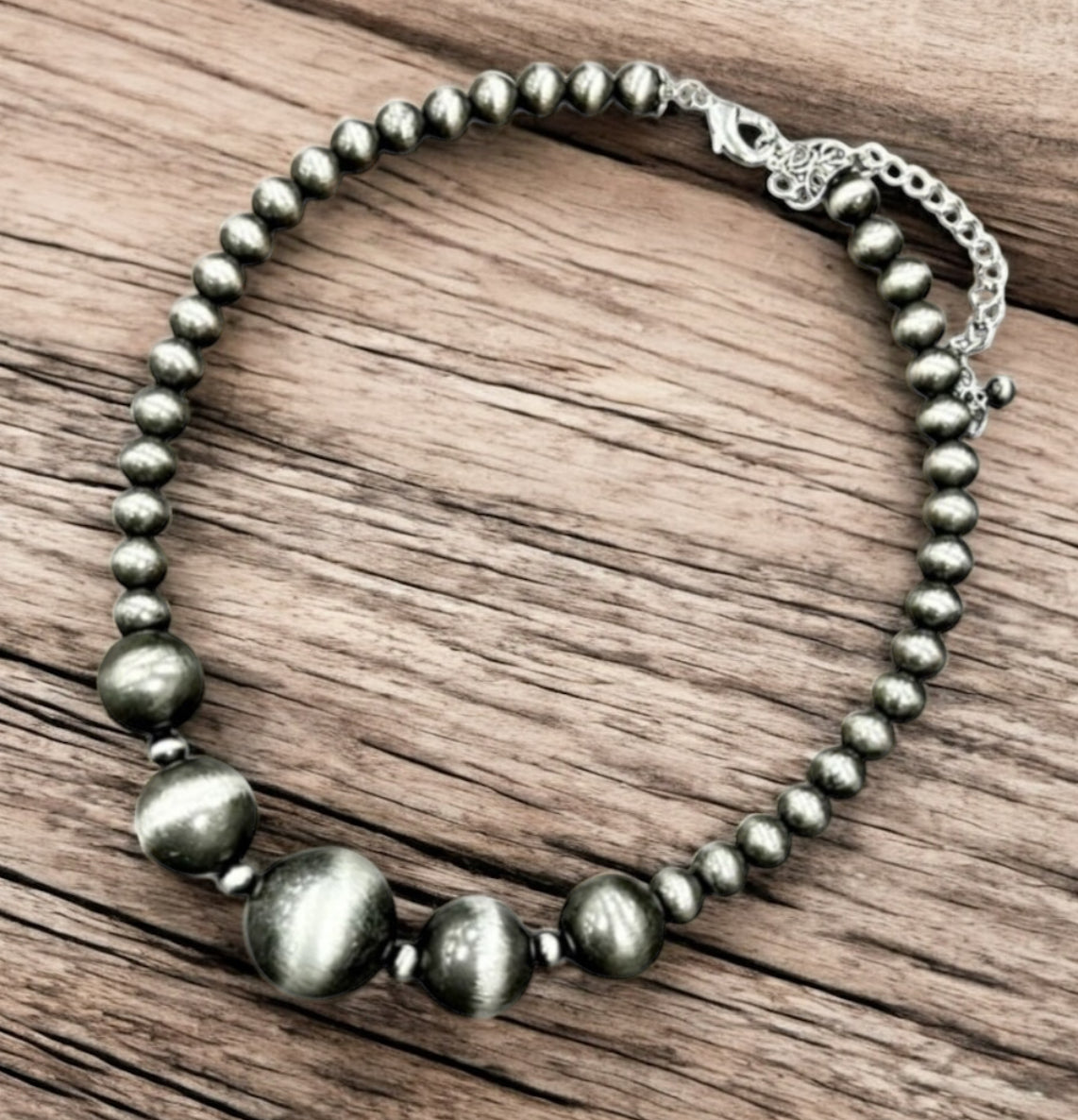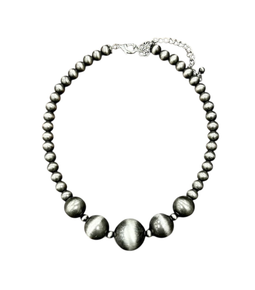 Turn heads with this handmade Very-Big! Navajo bead necklace, designed with graduated bead sizes up to 25mm for maximum impact. The necklace includes 10mm, 18mm, 20mm, and 25mm Navajo beads, creating a bold, eye-catching look that embodies true Southwestern style.