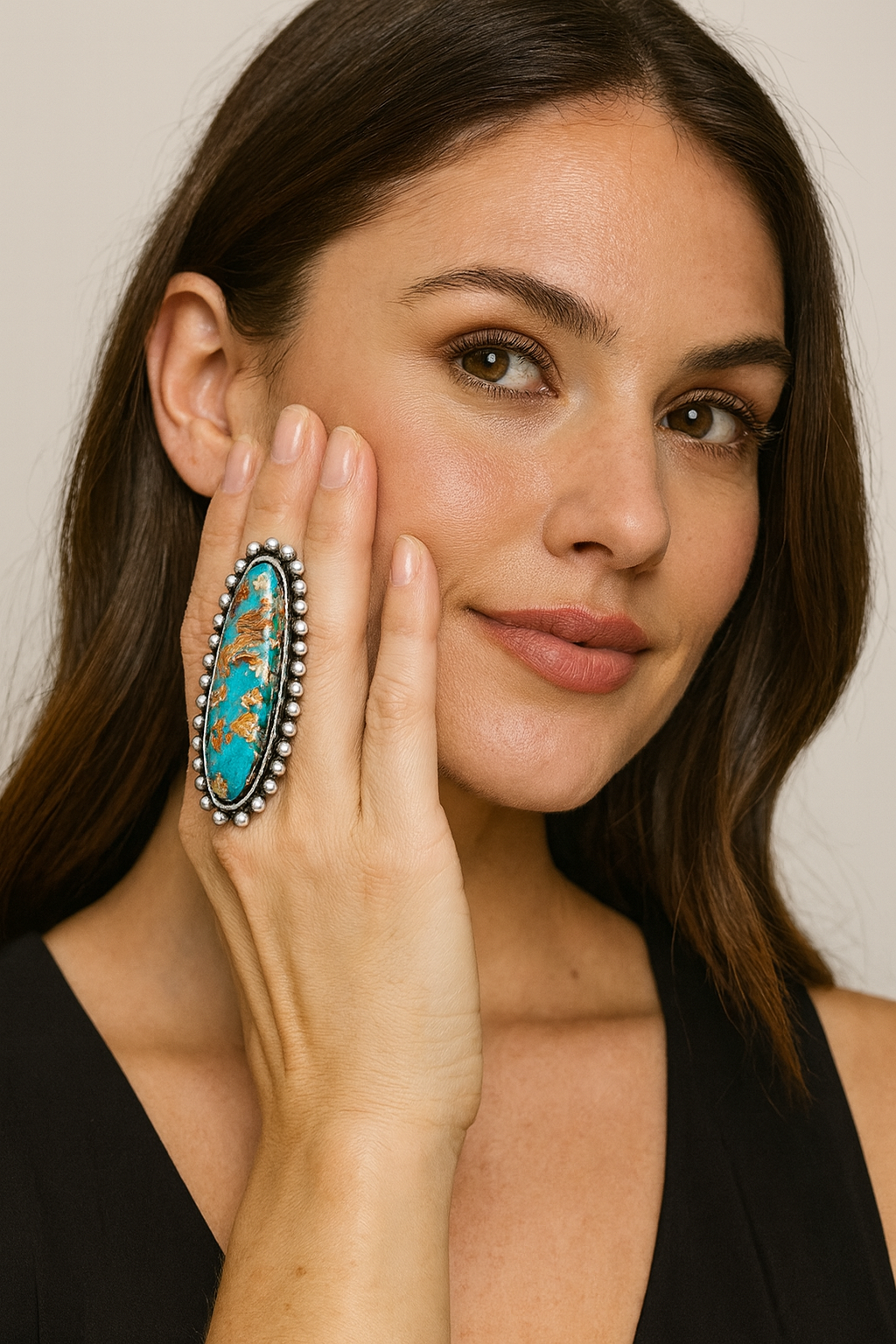 This bold gemstone statement ring is designed to stand out. Featuring a massive 2.6" natural stone, it sits on a durable brass dual adjustable band with antique silver plating. The band adjusts by gently expanding both sides, ensuring comfort while keeping the gemstone secure. Perfect for those who love unique, oversized jewelry pieces that add instant character to any outfit.