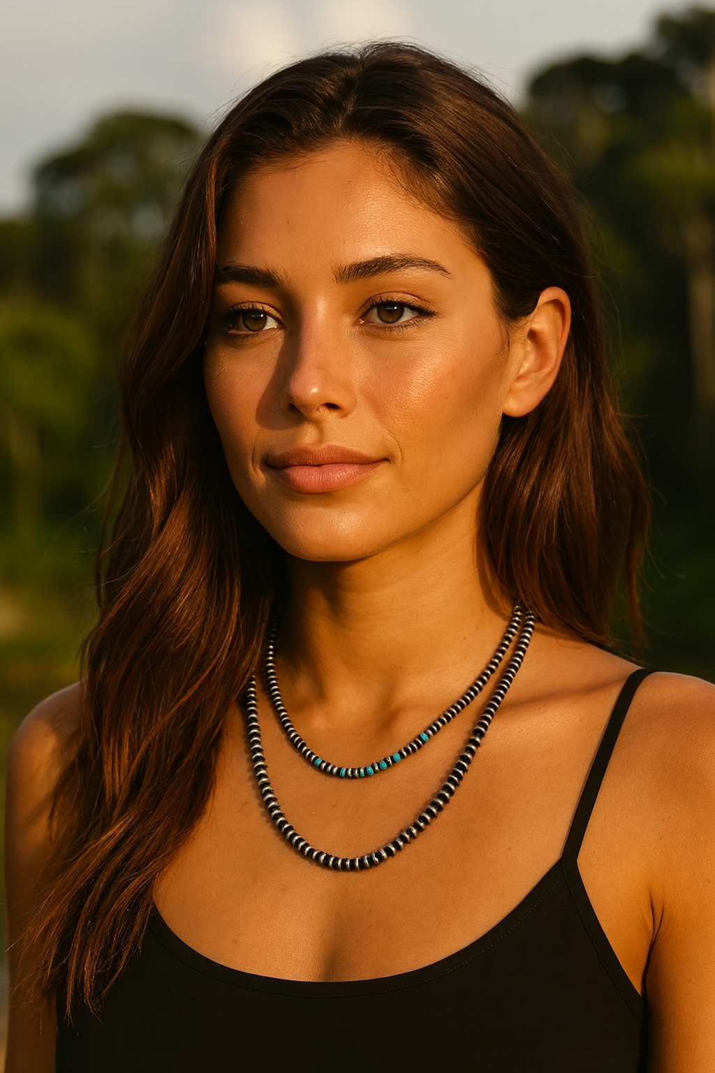 20" strand features Navajo rondelle and 4mm Navajo beads for a seamless layered finish.