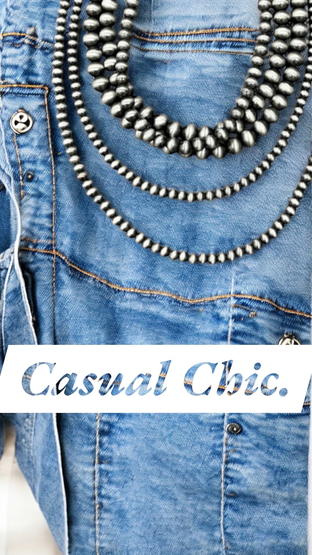 Featuring polished 6mm, 8mm, and 10mm Navajo pearls in varying lengths, this necklace drapes beautifully and adds instant cowgirl charm.