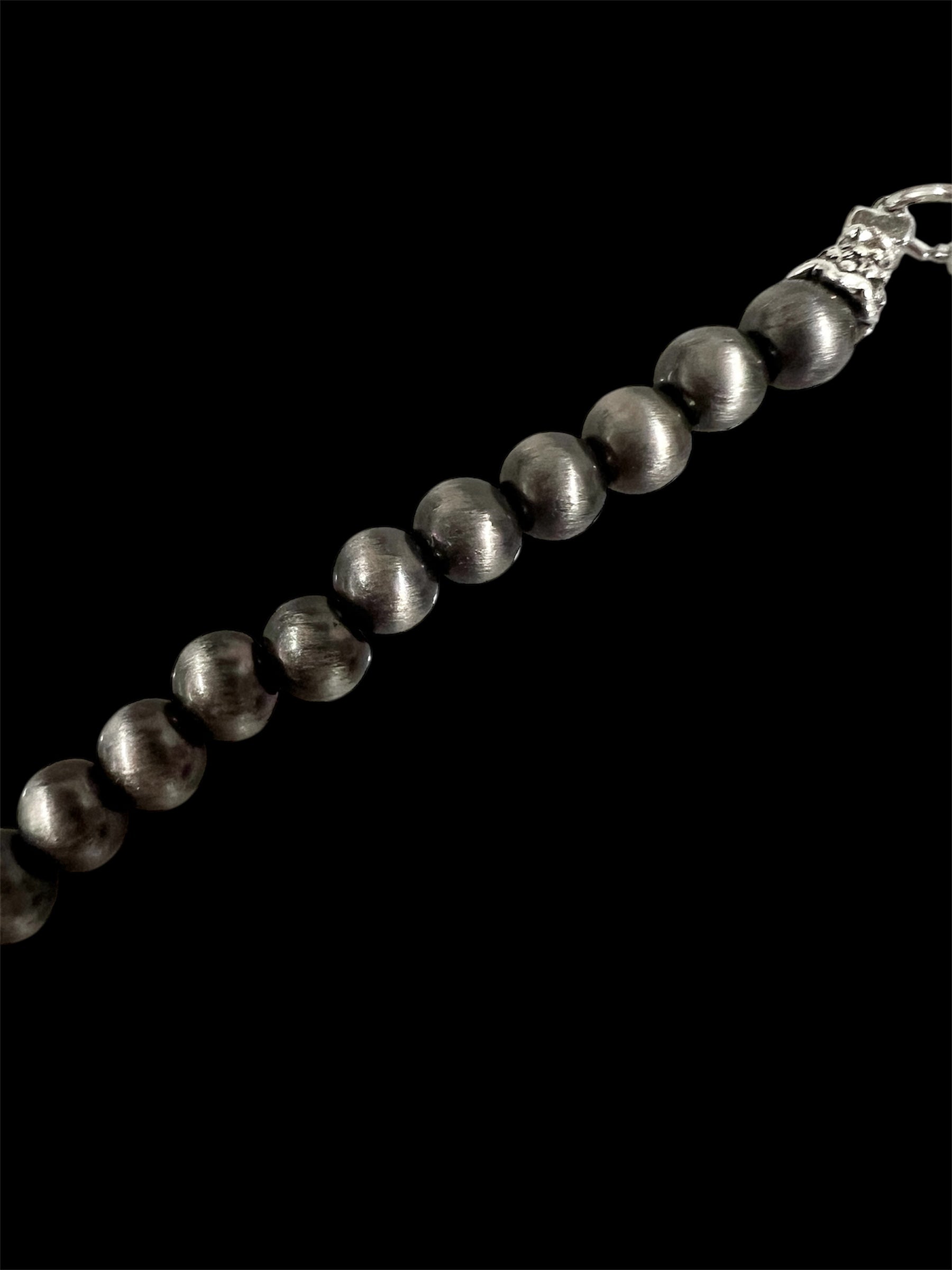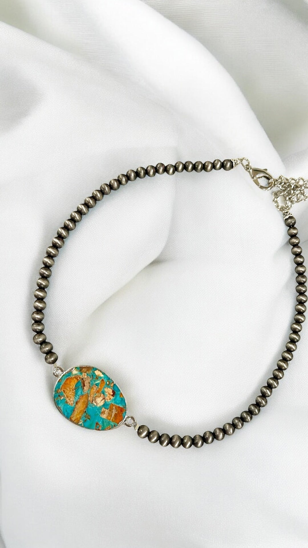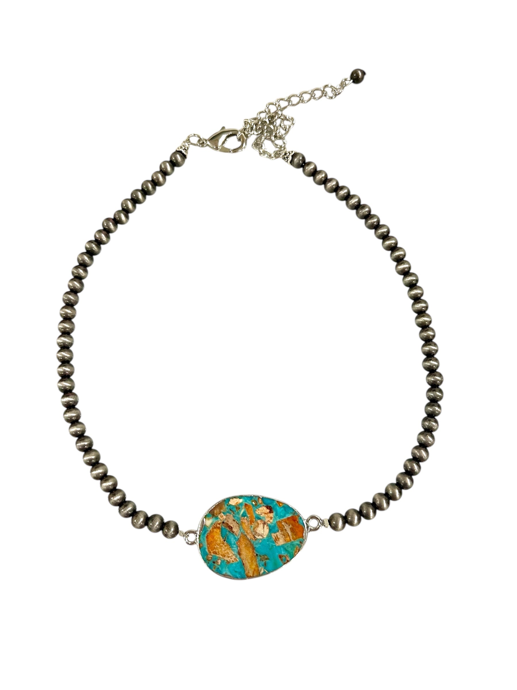 Handmade 6mm Navajo Bead Necklace with Bezel Gemstone Pendant, Western Boho Cowgirl Jewelry, Silver Bead Necklace739554