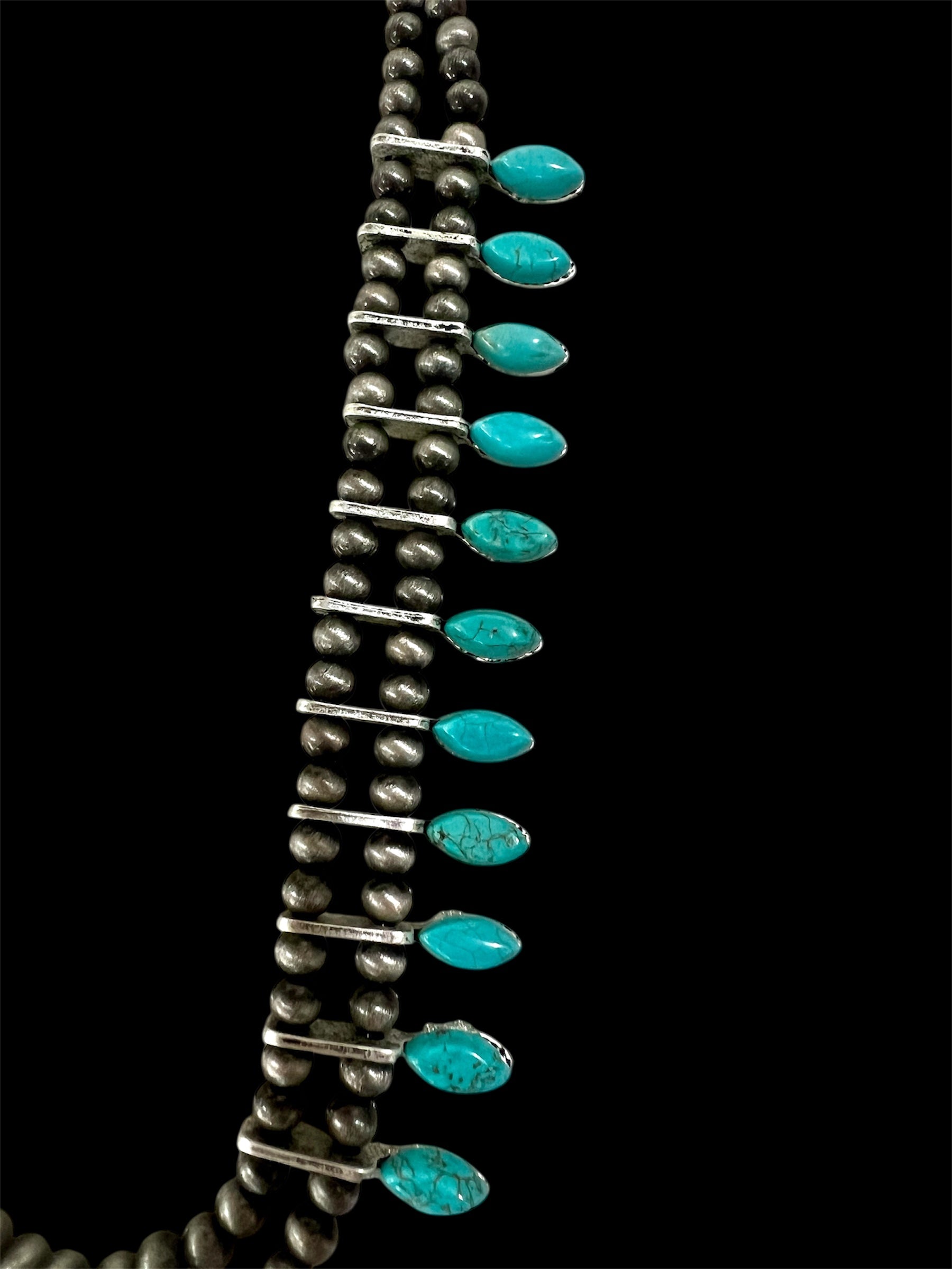 Premium Details: 6mm Navajo-style silver beads with 2" turquoise blossom pendant