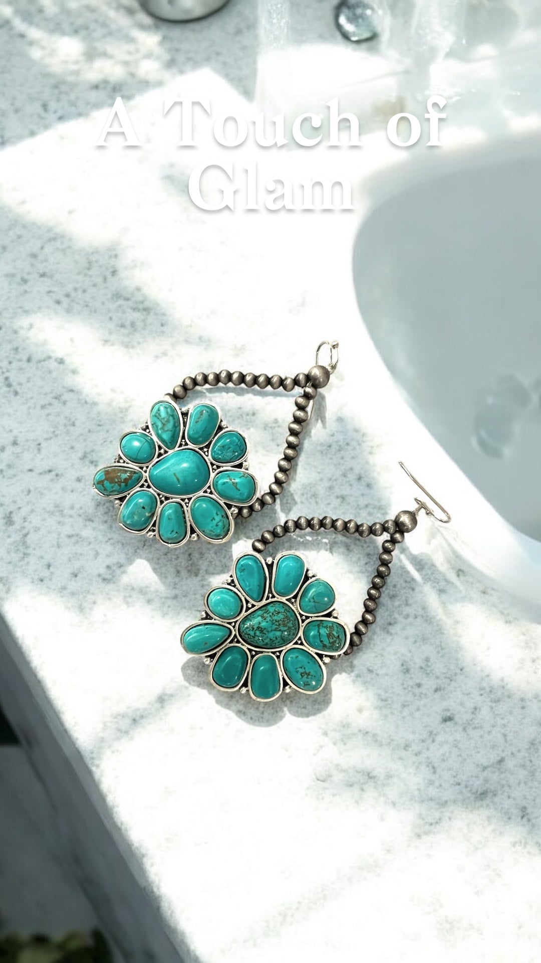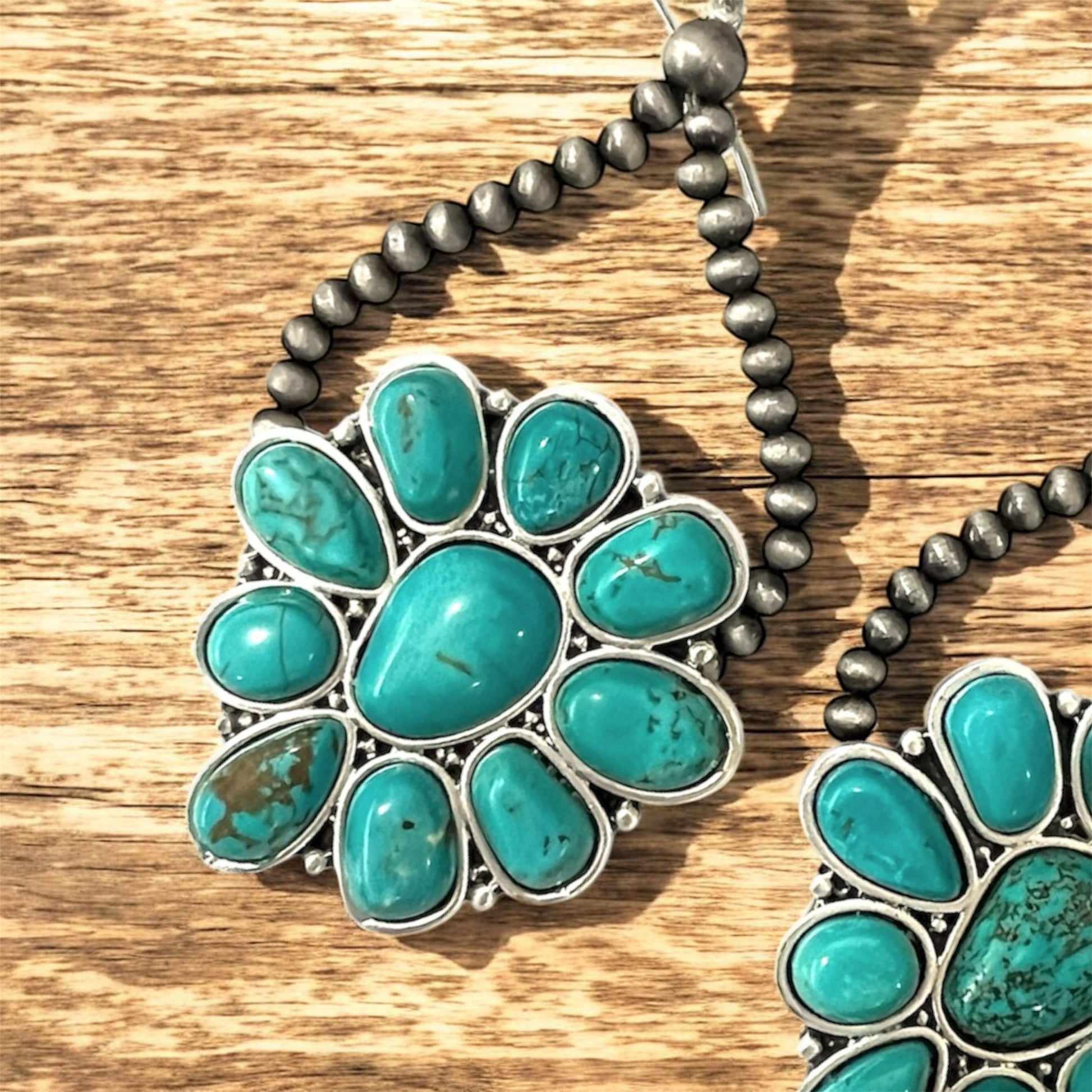 These handmade turquoise concho earrings bring a true Western spirit to your look — elegant, rustic, and full of character.