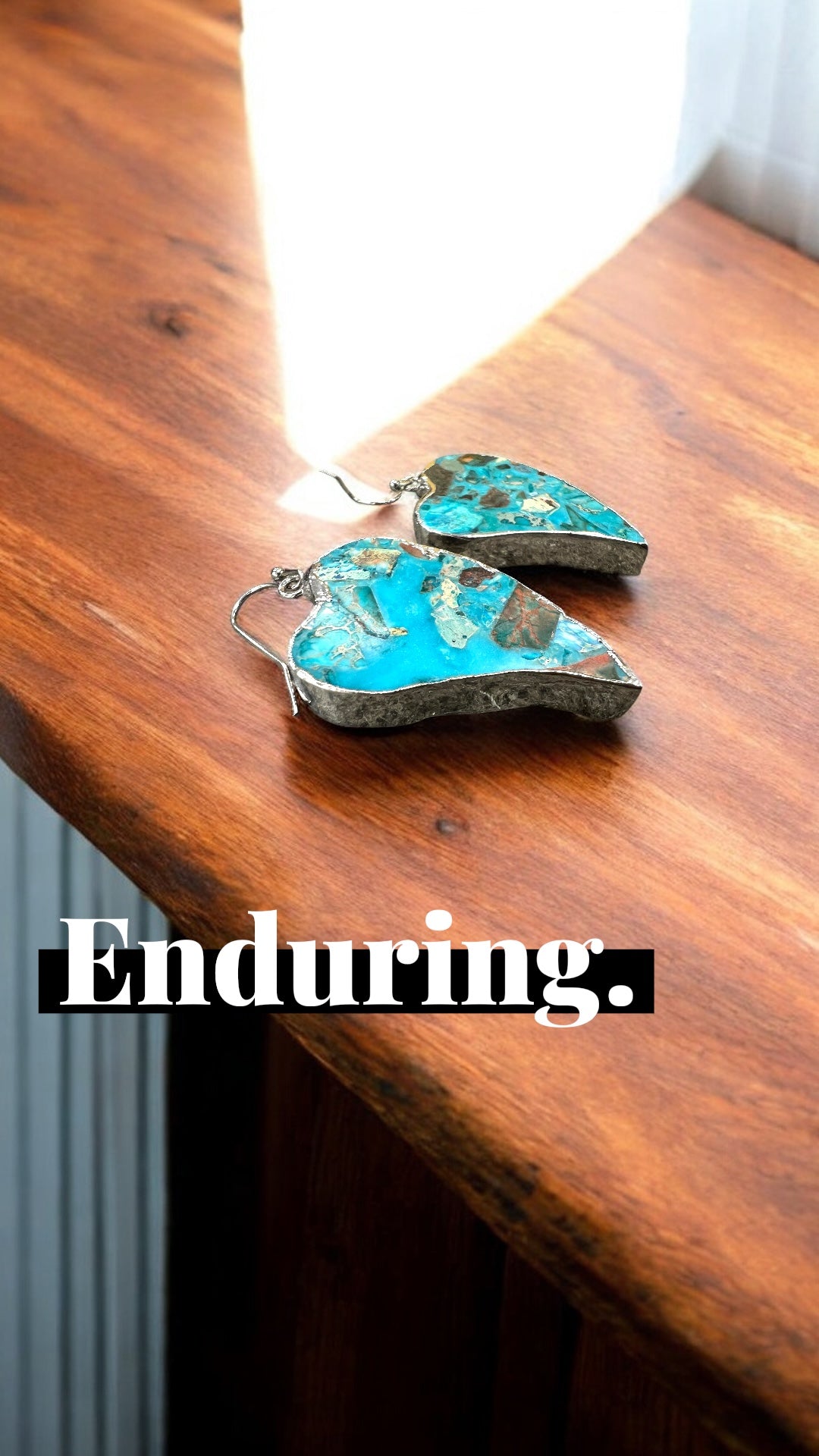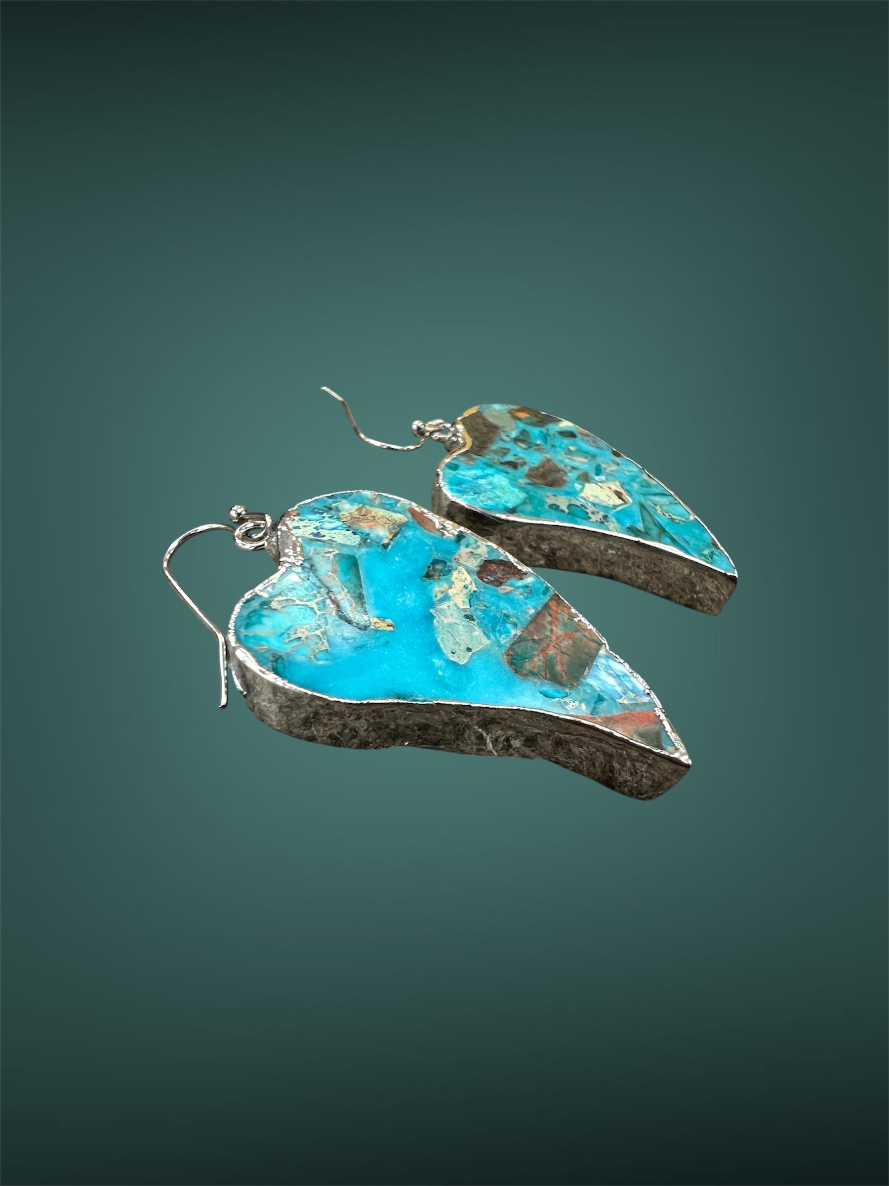 Add a bold pop of turquoise charm to your look with these heart-shaped gemstone earrings. Each piece is unique, featuring natural stone variations that make your pair truly one of a kind.