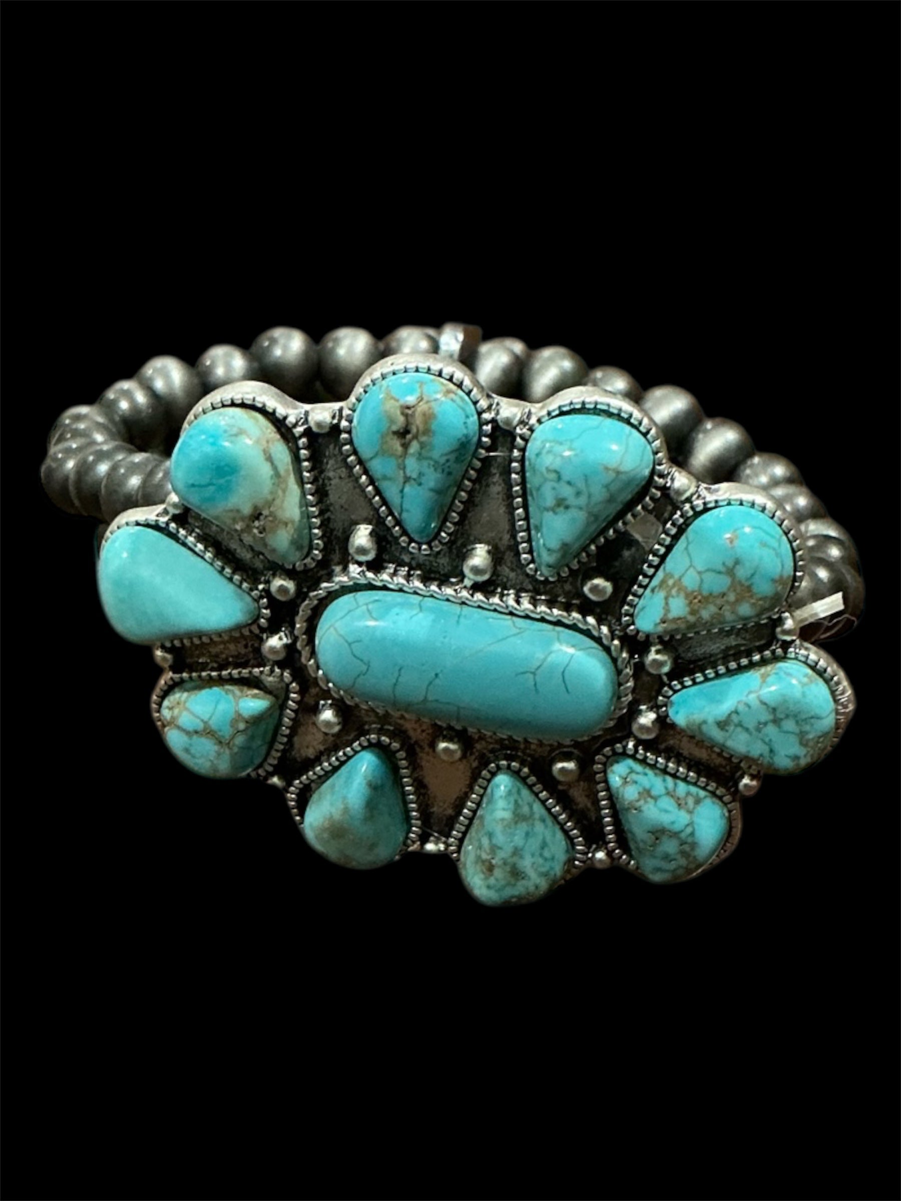 Add authentic Southwestern style to your look with this Natural Turquoise 2-Strand Stretch Bracelet. Featuring 8mm Navajo-style pearls and genuine turquoise stones, this bracelet blends rustic charm with timeless beauty. The stretch design makes it comfortable and easy to wear, while the antique silver plating gives it a vintage-inspired Western finish.