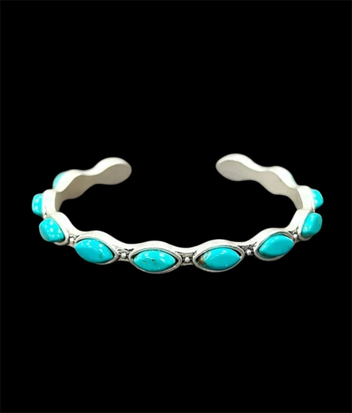 The open “C” design slips on easily and adds a perfect pop of turquoise to any cowgirl or Southwestern outfit.