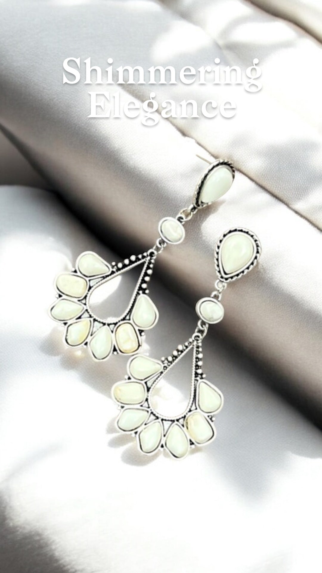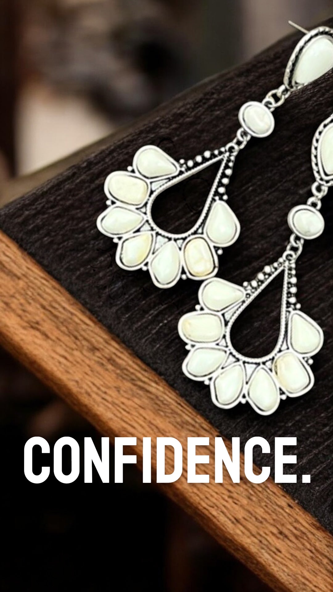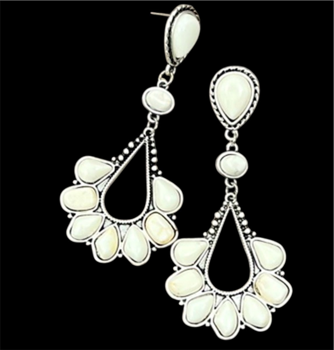 Handcrafted Western Design – 3.2" long post earrings featuring genuine white turquoise stones set in an antique silver finish.