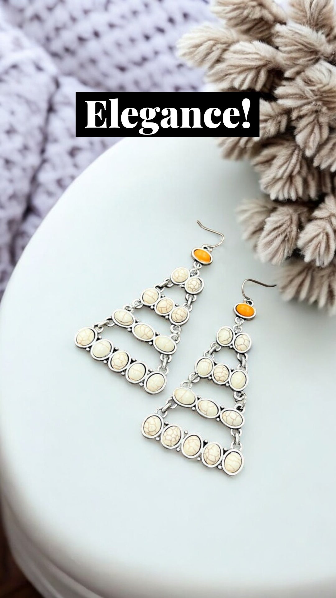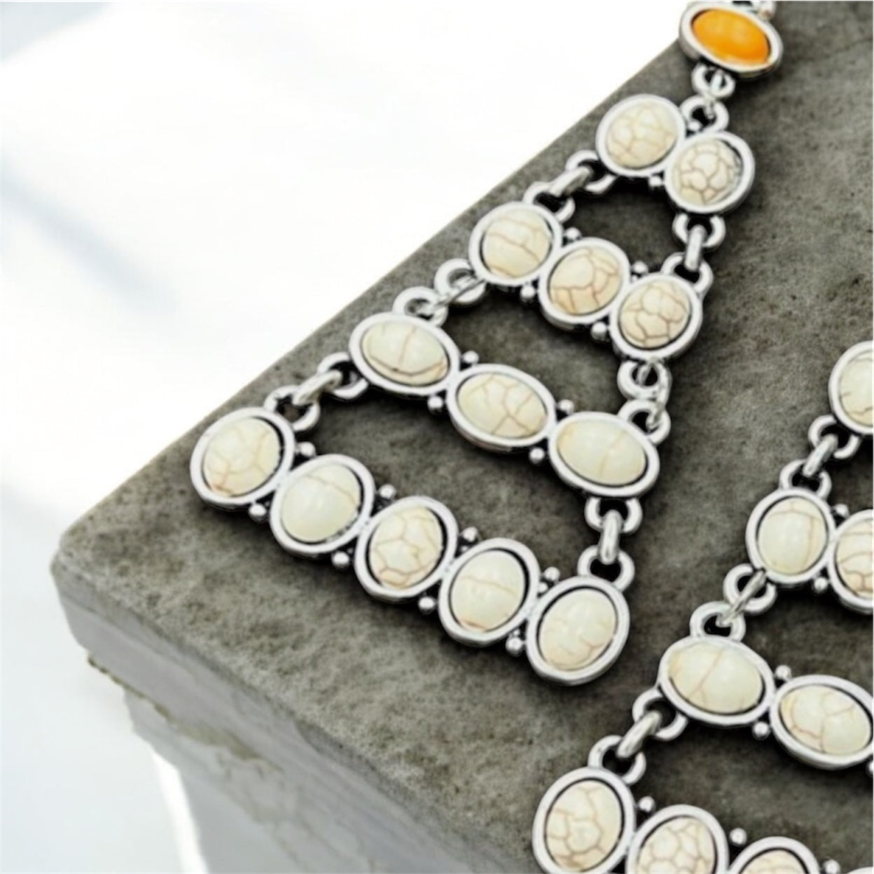 Big! 3" Long, Navajo Synthetic White Turquoise Earrings