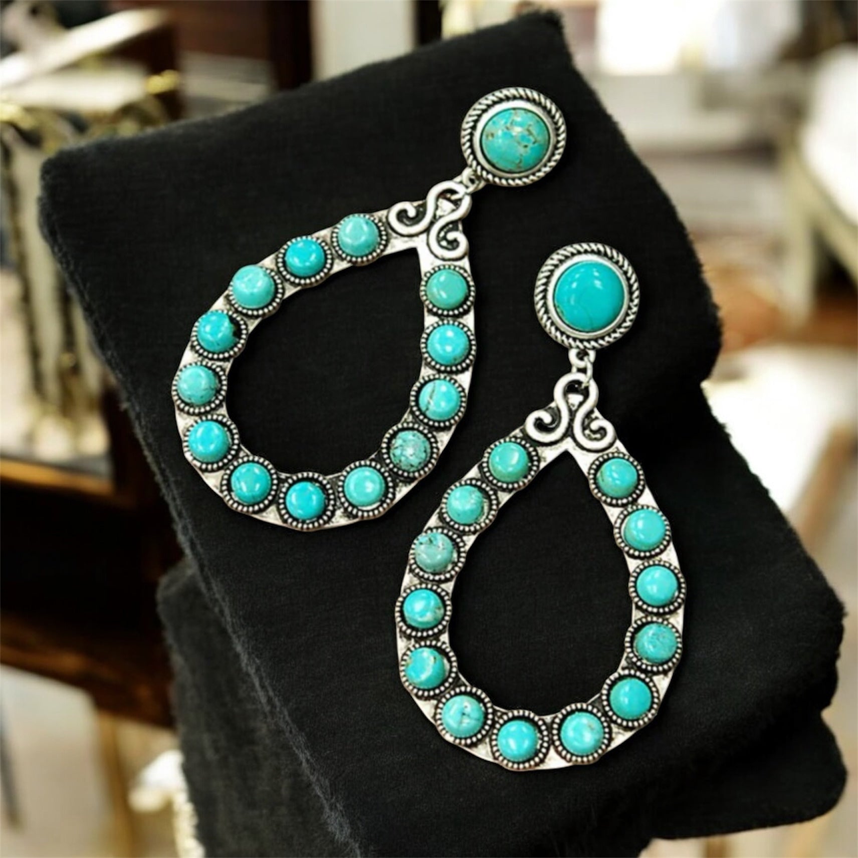 Pair them with layered Navajo pearl necklaces or turquoise pendants for a complete Southwestern look.
